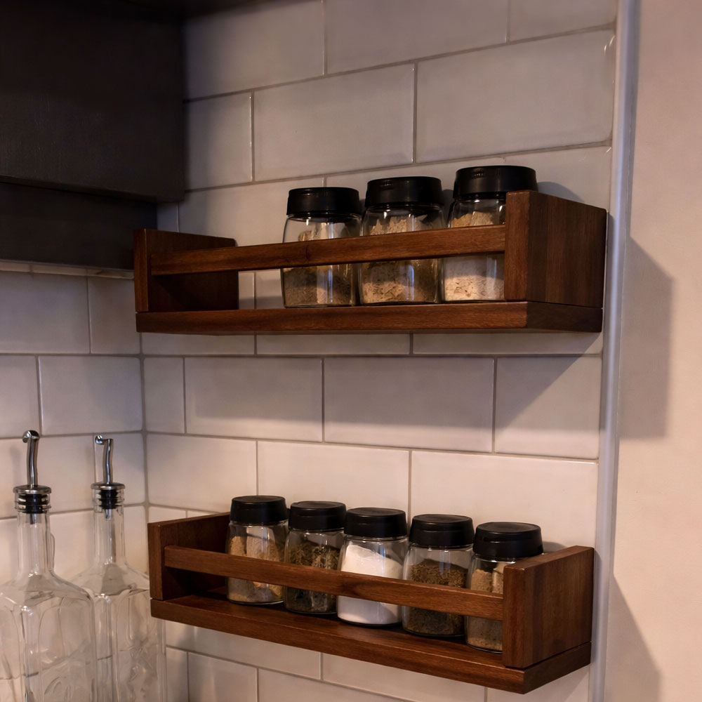 Evinize doğal şıklık, düzen ve sıcak bir atmosfer kazandıran bu 2’li ceviz renk ahşap duvar rafı seti, mutfak, banyo ve yaşam alanları için hem dekoratif hem de fonksiyonel bir çözümdür.