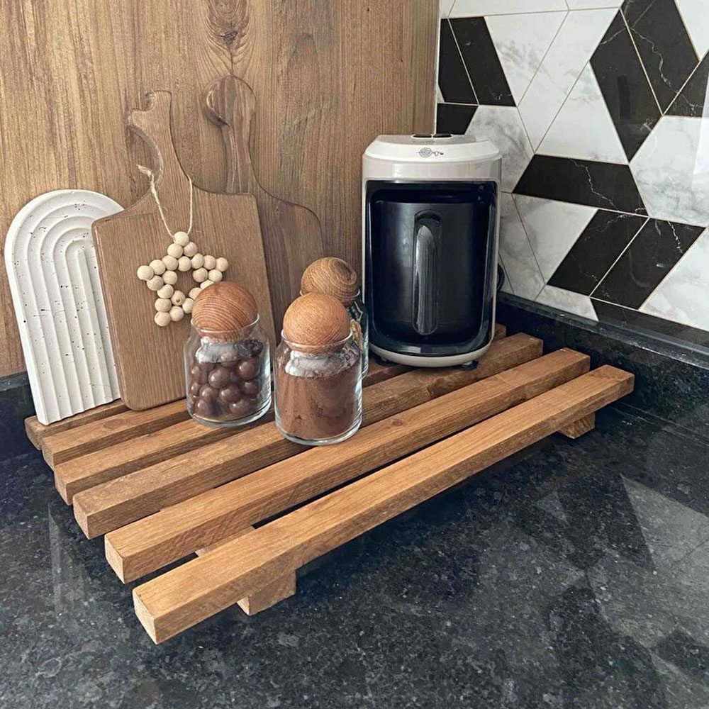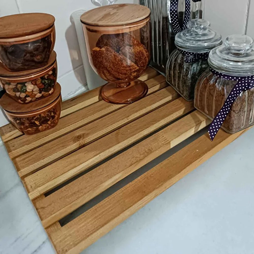 Airfryer, kahve makinesi, bulaşık selesi gibi birçok ürünün altında kullanabileceğiniz bu yükseltici platform; mutfaktan banyoya, kapı önünden tezgâh üstüne kadar birçok alanda düzeni ve zarafeti bir araya getirir.