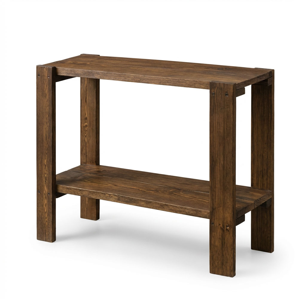 Masif Ahşap Yan Sehpa, 2 Katlı Raflı Doğal Ahşap Dekoratif Tasarım