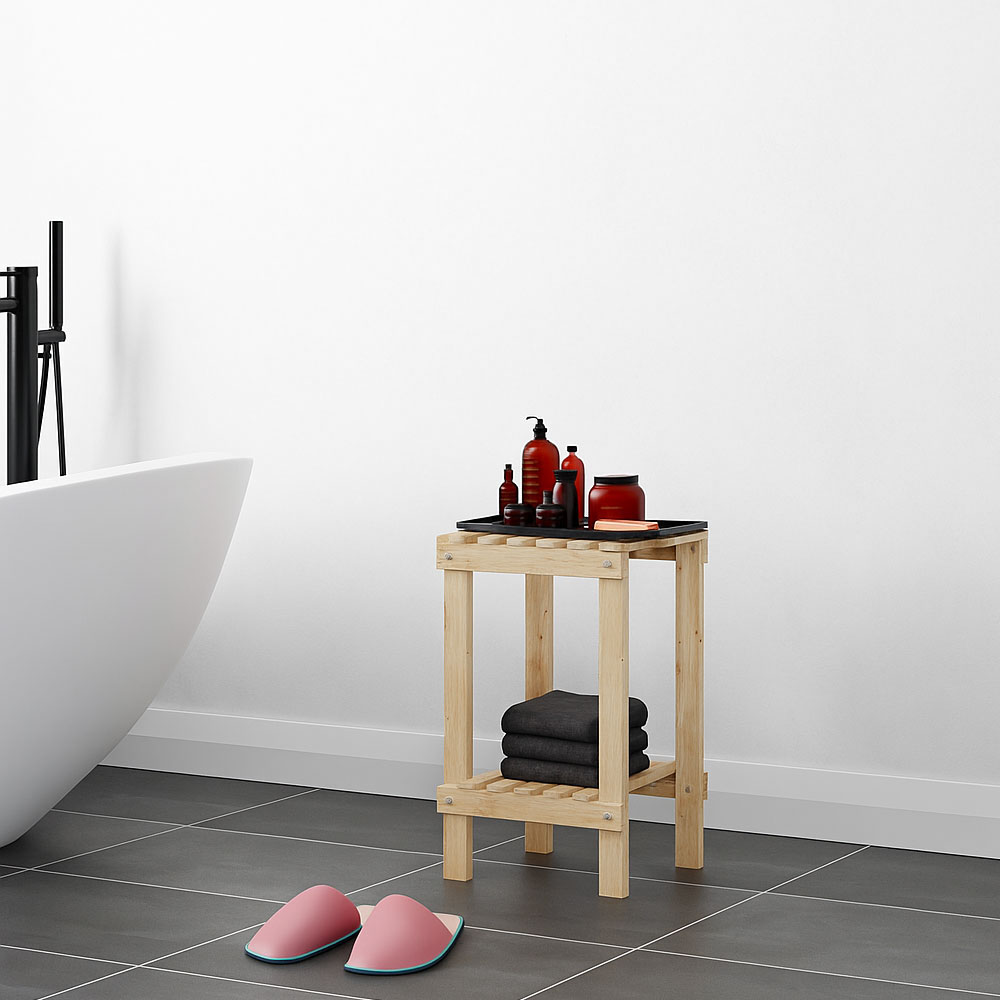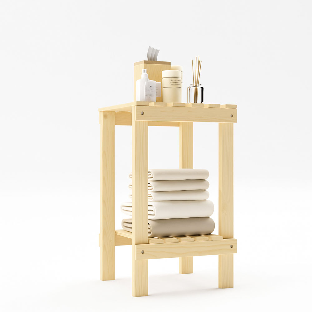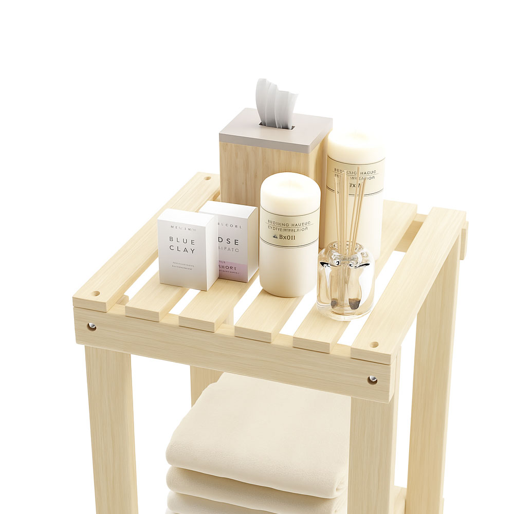 Naturel Ahşap 2 Katlı Banyo Rafı , Çok Amaçlı Mutfak & Balkon Sehpası , Havlu ve Düzenleyici Stand